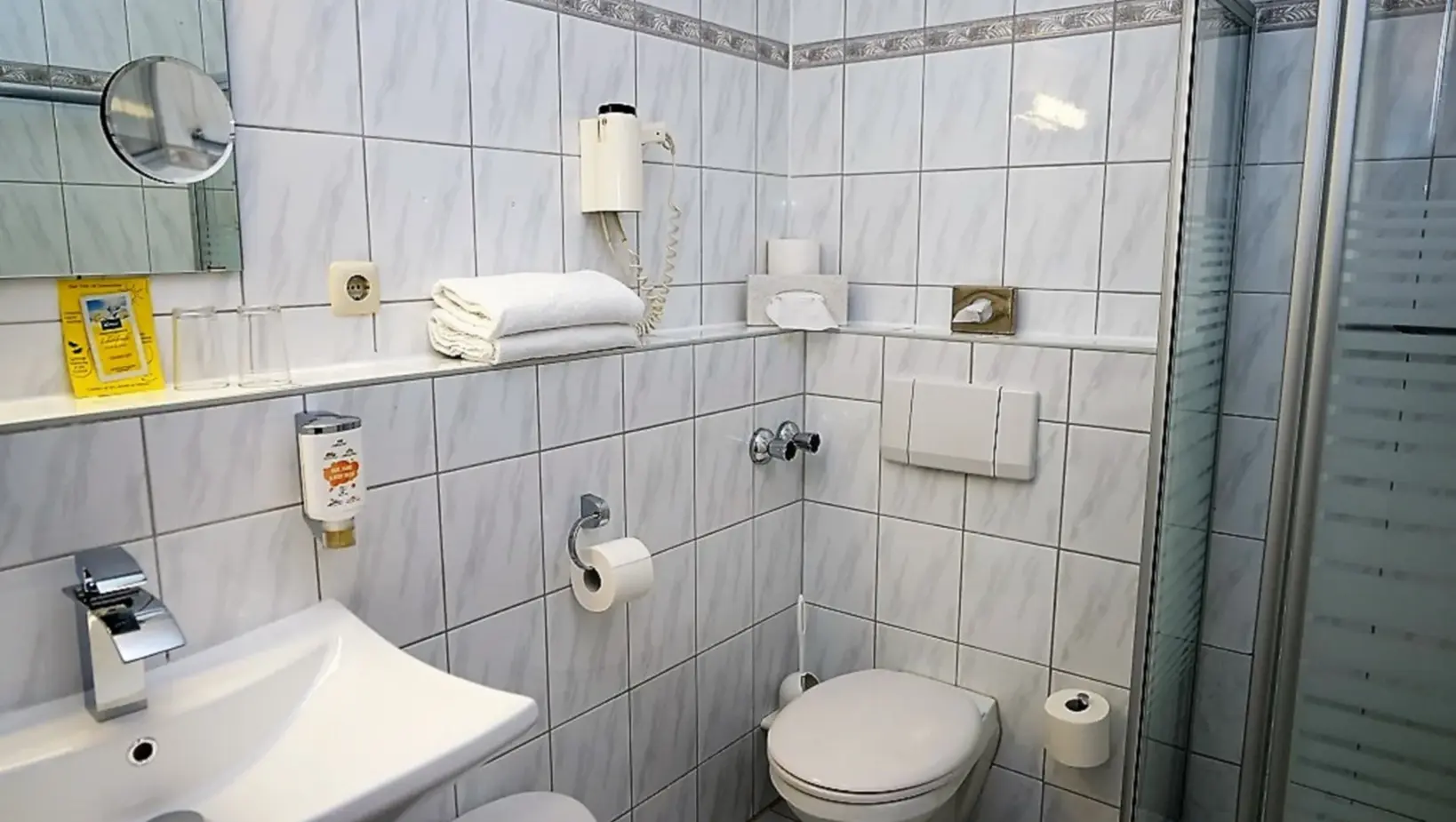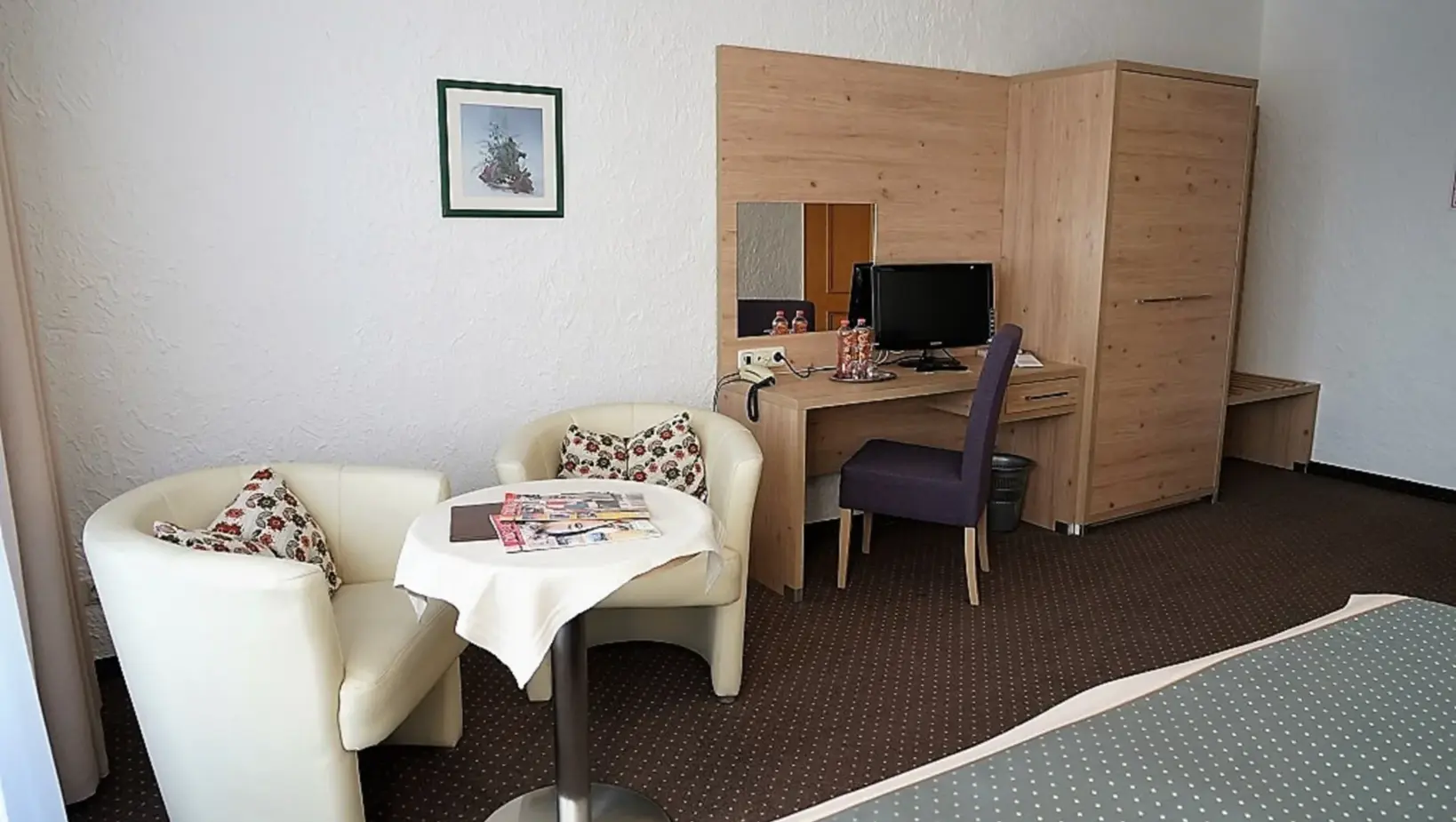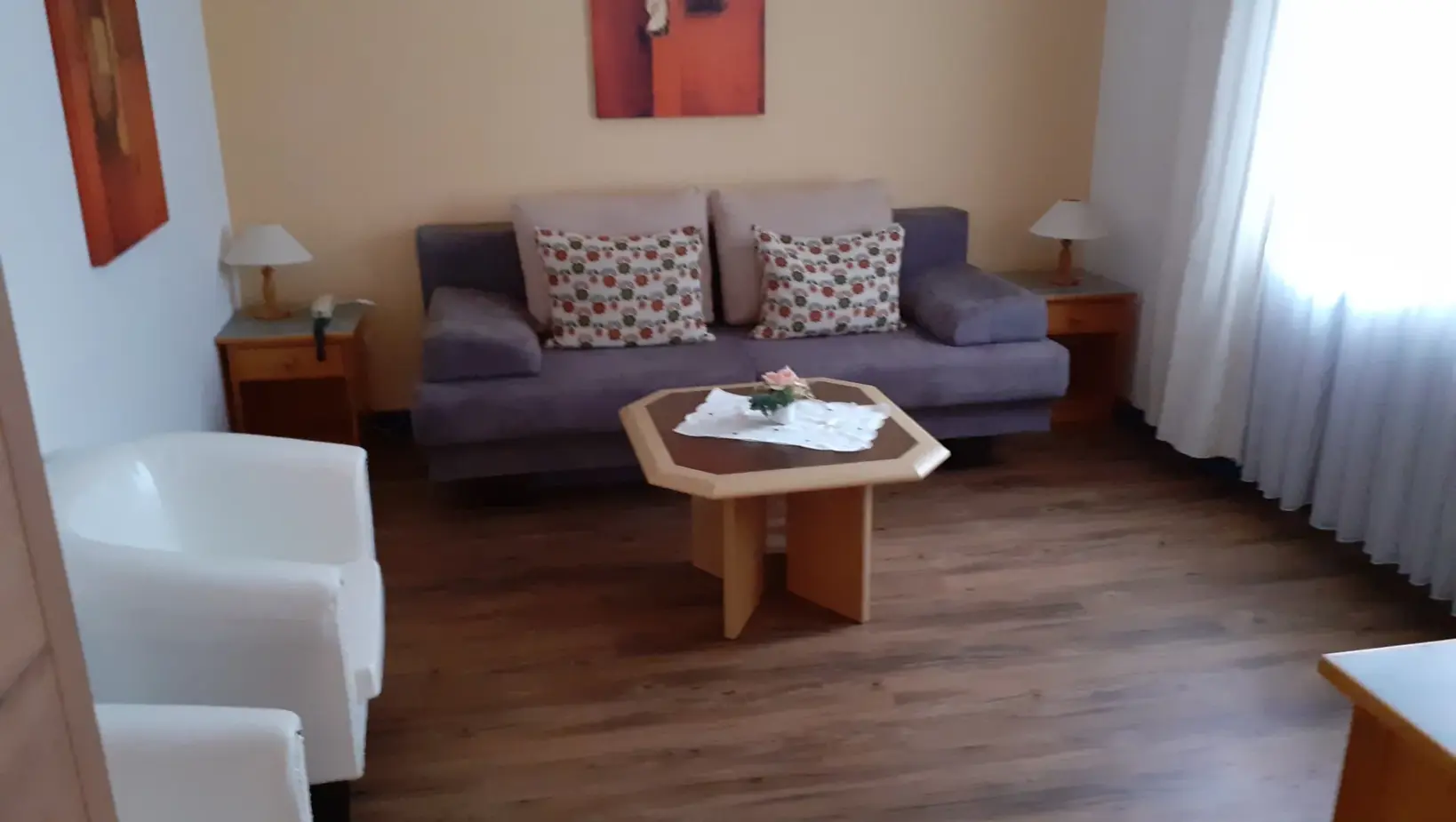 Our rooms have been shining in new splendor since March 2022. In addition to renovated bathrooms with flat showers, new carpeting, freshly painted walls, new curtains and drapes, as well as new furniture including box spring beds invite you to spend a few pleasant days in our house.